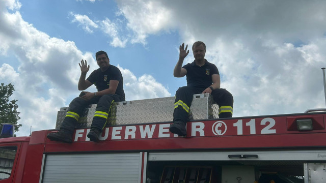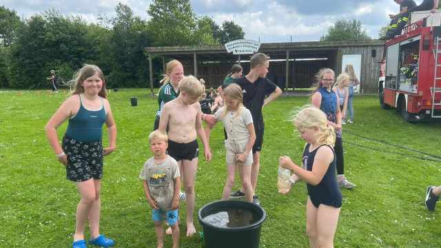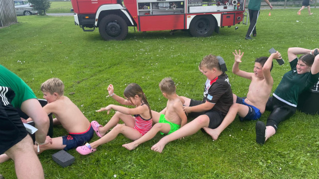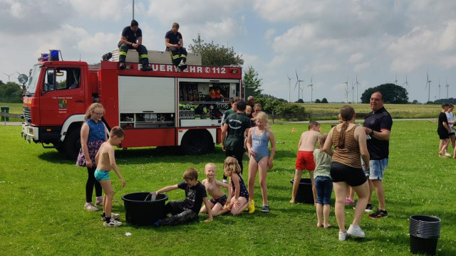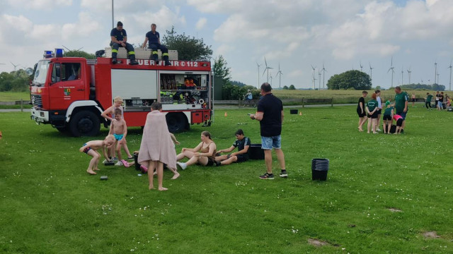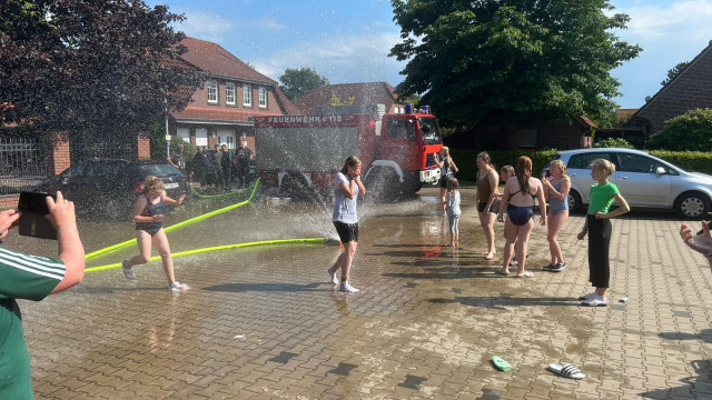 Für den Nachmittag war dann die Feuerwehr arrangiert um dass die Wasserspiele stattfinden konnten ![]()
