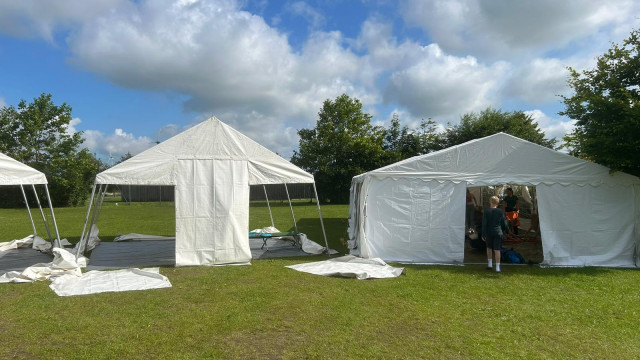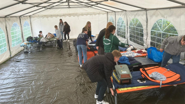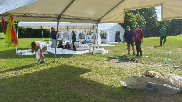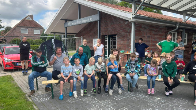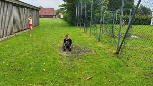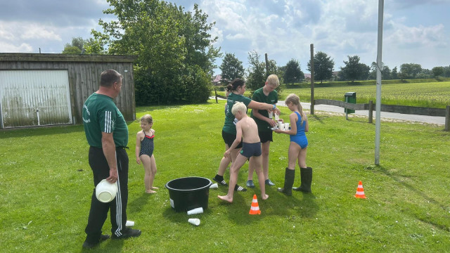 Nach dreimonatiger Vorbereitungszeit ging es am Freitag um 15 Uhr los und die bereits von den Männermannschaften aufgebauten Zelte konnten bezogen werden. Leider hat am Freitagnachmittag der Regen unseren Zeltplatz unter Wasser gestellt, so dass die geplanten Spiele ins Vereinsheim verlegt wurden. Auch die offizielle Eröffnung durch unserer Schirmherren, die aus einer Abordnung der Ehrenabteilung bestand, Werner Siebels und Jochen Ahrends, fand im Vereinsheim statt. Die Stimmung war trotz des Wetters