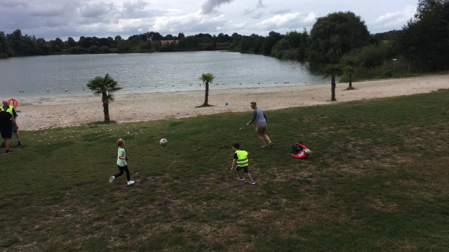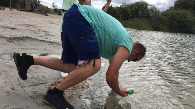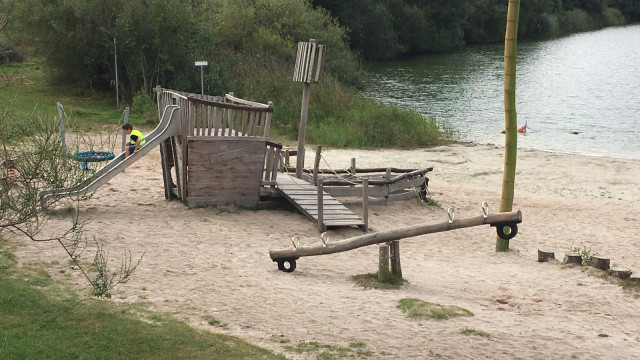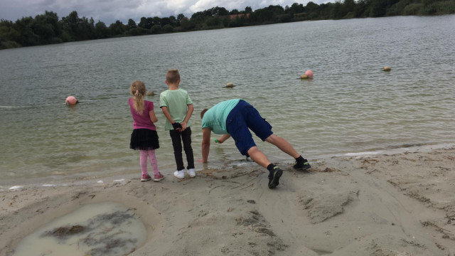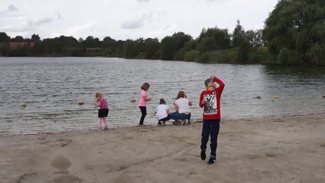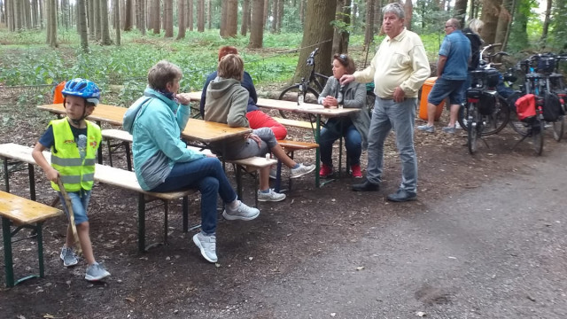 Dann fuhren wir weiter zur Kieskuhle nach Großheide wo Heiko und Erik schon wieder mit Kaffee und selbstgebackenen Kuchen auf uns warteten. Hier konnten die Kinder ausgelassen auf dem Spielplatz spielen oder sich mit, von Mathias organisierten Wasserpistolen, nassspritzen. Dann fuhren wir weiter in den Wald von Südarle wo wir wieder Rast mit kühlen Getränken eingelegt haben. Die „Kidis“ spielten im Wald und fanden so manche Überraschung.