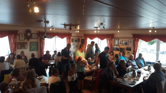 Am Sonntag war es dann endlich soweit. Nach einer kurzen Begrüßung und Sicherheitseinweisung durch Timo Tolksdorf, fuhren wir mit 56 Vereinsmitgliedern los Richtung Nenndorf. Da haben wir im Vereinsheim des KBV „Freesenmoot“ Nenndorf gefrühstückt, was Klaus, Heike, Mathias und Timo hervorragend vorbereitet hatten. Vielen Dank an den KBV „Freesenmoot“ aber besonders an Thekla Lübben die uns Kaffee und Tee servierte. Das war richtig toll.