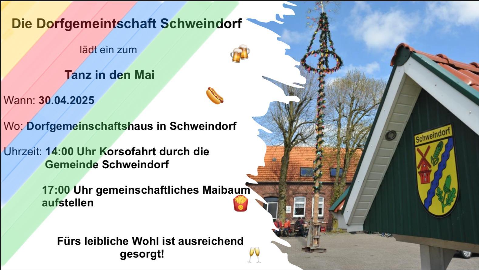 Die Dorfgemeinschaft Schweindorf lädt herzlich ein zum Tanz in den Mai am 30. April 2025!